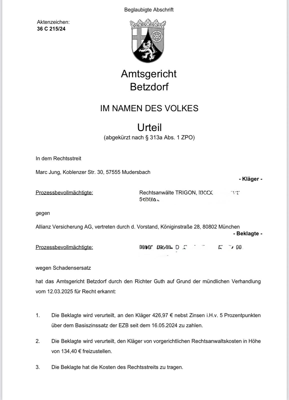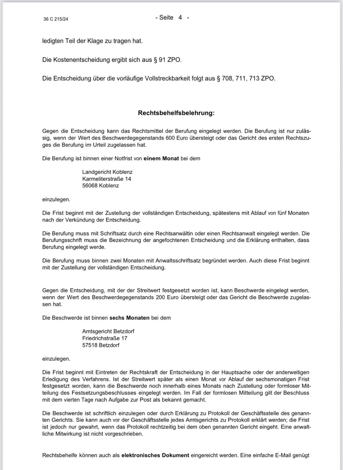 Klagen und Urteile